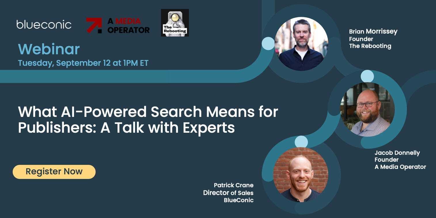 Tomorrow (Tuesday, 9/12), I’m joining Jacob Donnelly from A Media Operator and Patrick Crane from BlueConic, to discuss the implications of generative AI changing what I consider the nerve system of digital publishing. Some topics we’ll address: