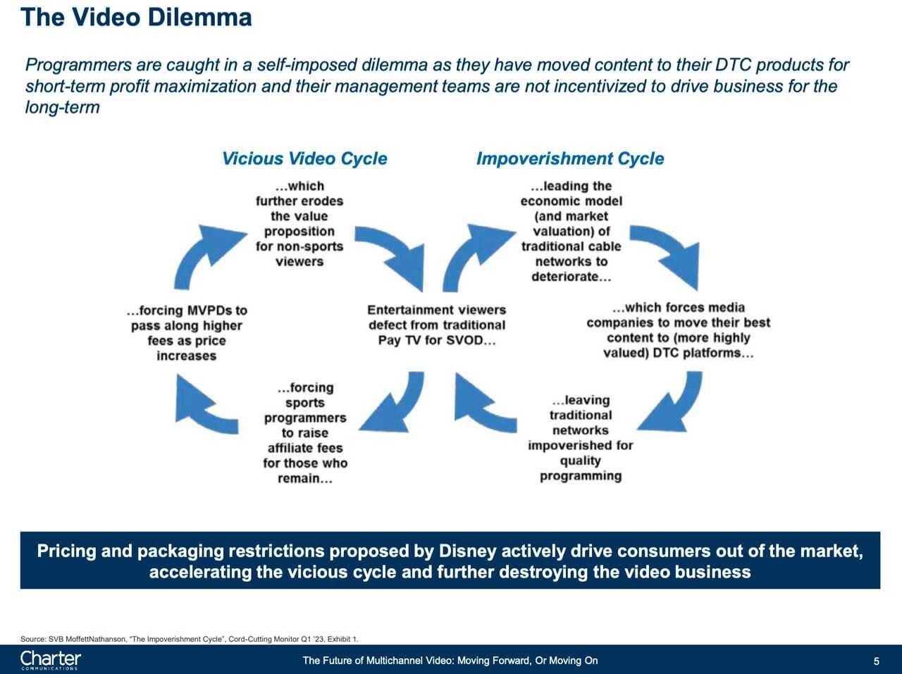 “This is more than the usual eleventh-hour posturing (though it is also posturing, to be sure). Charter, the nation’s second-biggest cable operator after Comcast, is publicly acknowledging that the cable bundle model that has sustained the media business for decades—minting tens of billions of dollars in annual revenues for the likes of Disney, NBCU, Warner, et al., and fat paychecks for their C.E.O.s—is totally broken. More importantly, Charter is declaring that it is effectively indifferent to a future without its pay TV business. And it is doing all of this just as the American football season—the last bulwark against legacy television’s decline—is getting underway. (ESPN holds rights to Monday Night Football and myriad college football games.) ‘It’s hard to describe the stress right now on the system,’ one veteran media executive said.”